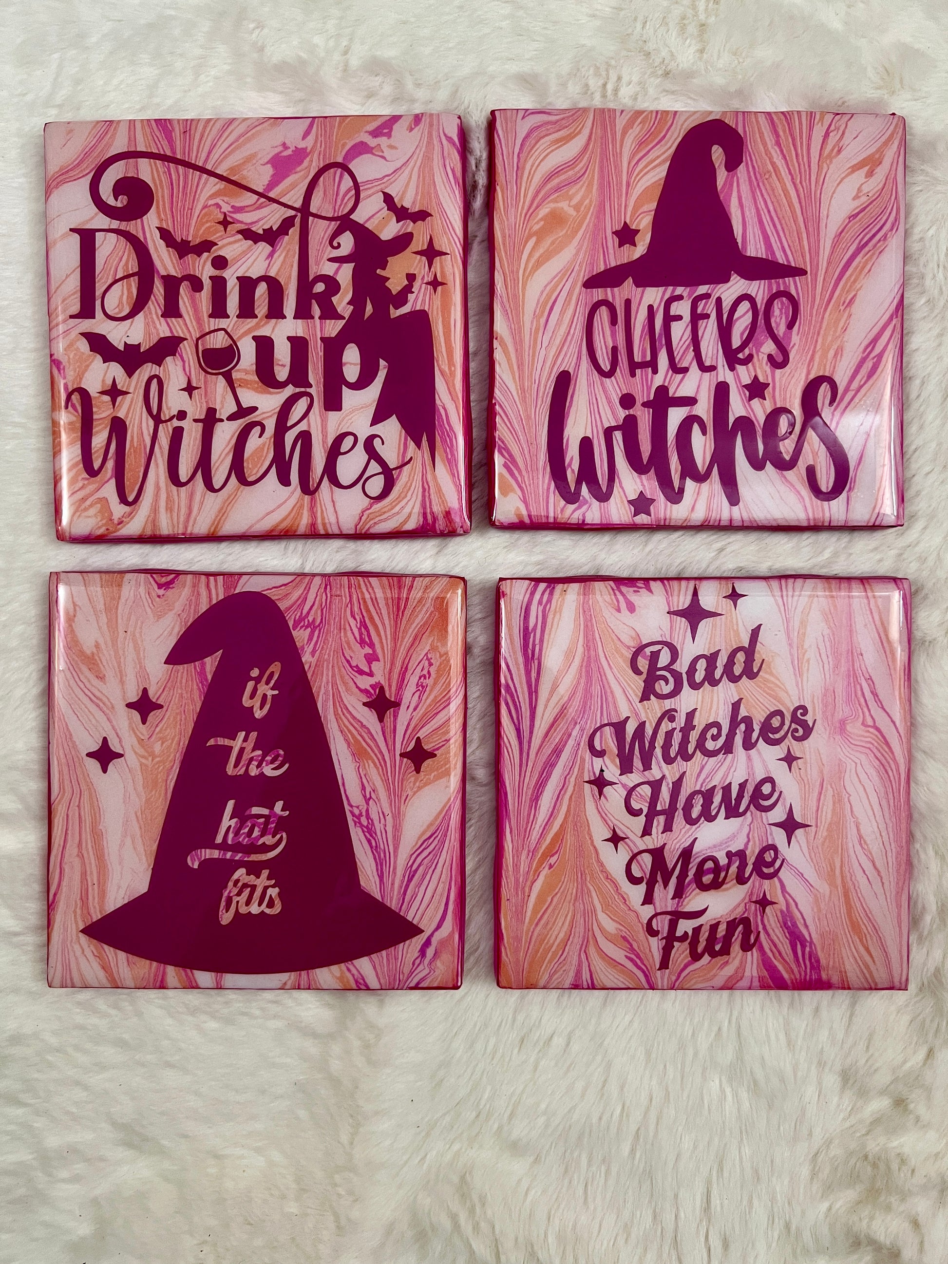 Raise a glass to magical moments with this enchanting coaster set designed for the modern witch. Featuring spooky-chic designs perfect for wine nights and witchy gatherings, these coasters protect your surfaces while celebrating your mystical side. Each piece brings a touch of potion-brewing charm to your home bar or coffee table. Cheers to style that's equal parts fun and functional!