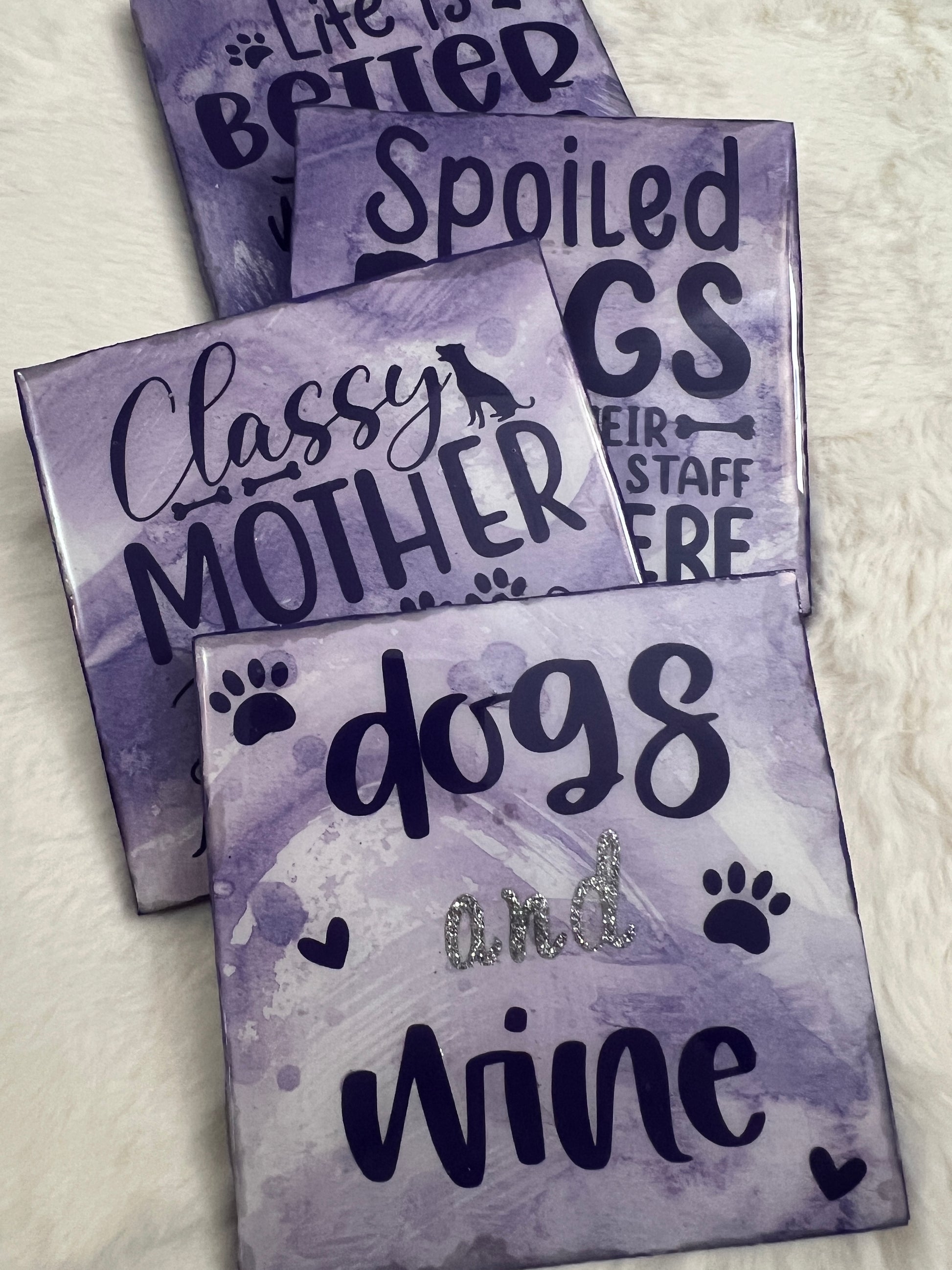 Elevate your entertaining with this refined coaster set, where canine charm meets wine culture. Each piece features sophisticated dog-inspired designs that celebrate the perfect pairing of man's best friend and fine wine. Crafted to protect your surfaces while adding a touch of personality to your home, this set makes an ideal gift for the discerning dog lover who appreciates quality and wit in equal measure.