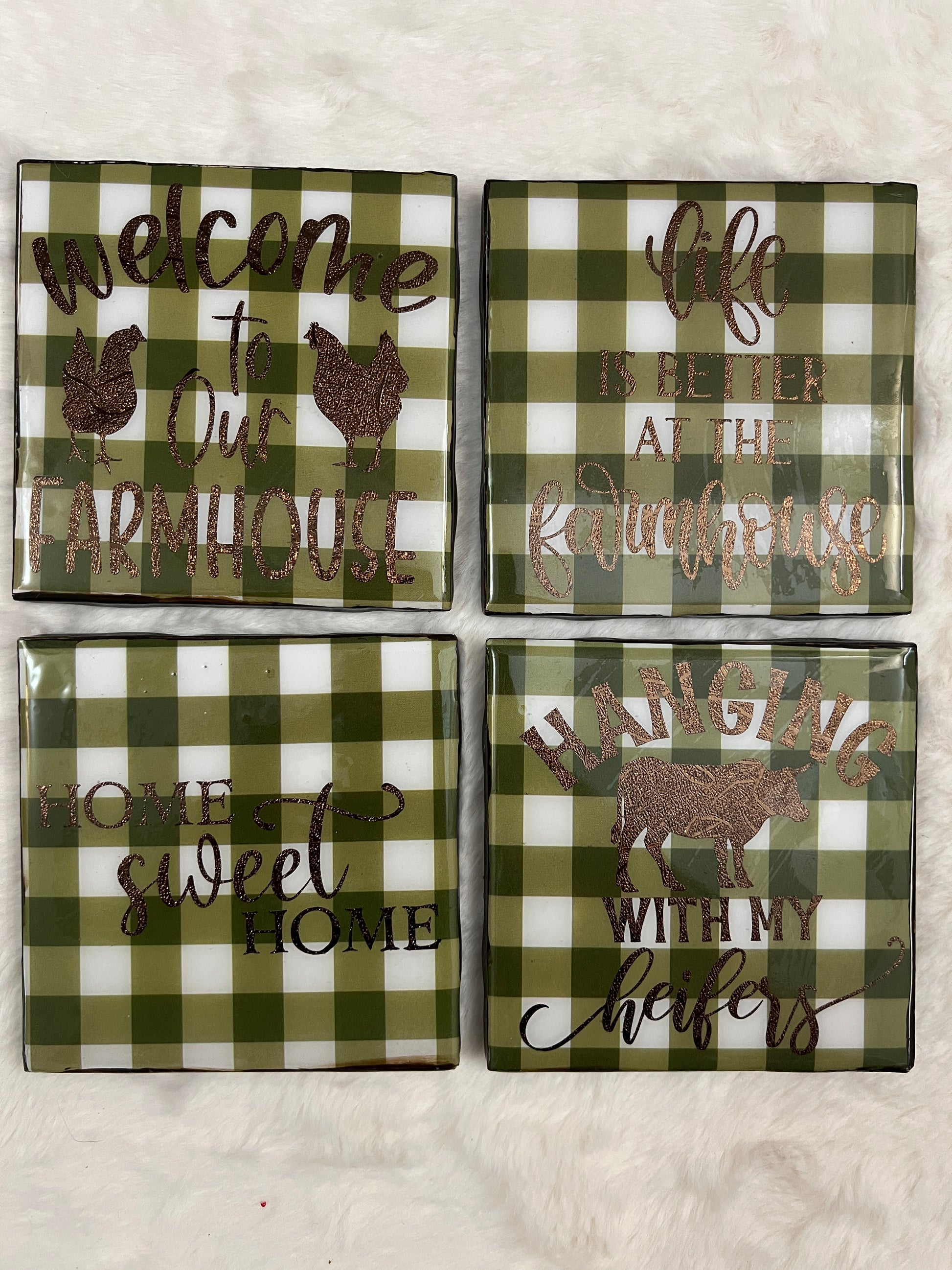 Bring rustic charm to your home with this delightful farmhouse coaster set. Perfect for protecting your tables while adding a touch of countryside warmth to any room, these coasters blend timeless style with everyday practicality. Whether you're serving morning coffee or hosting gatherings, they're the ideal accent piece for a home that celebrates simple, authentic living.
