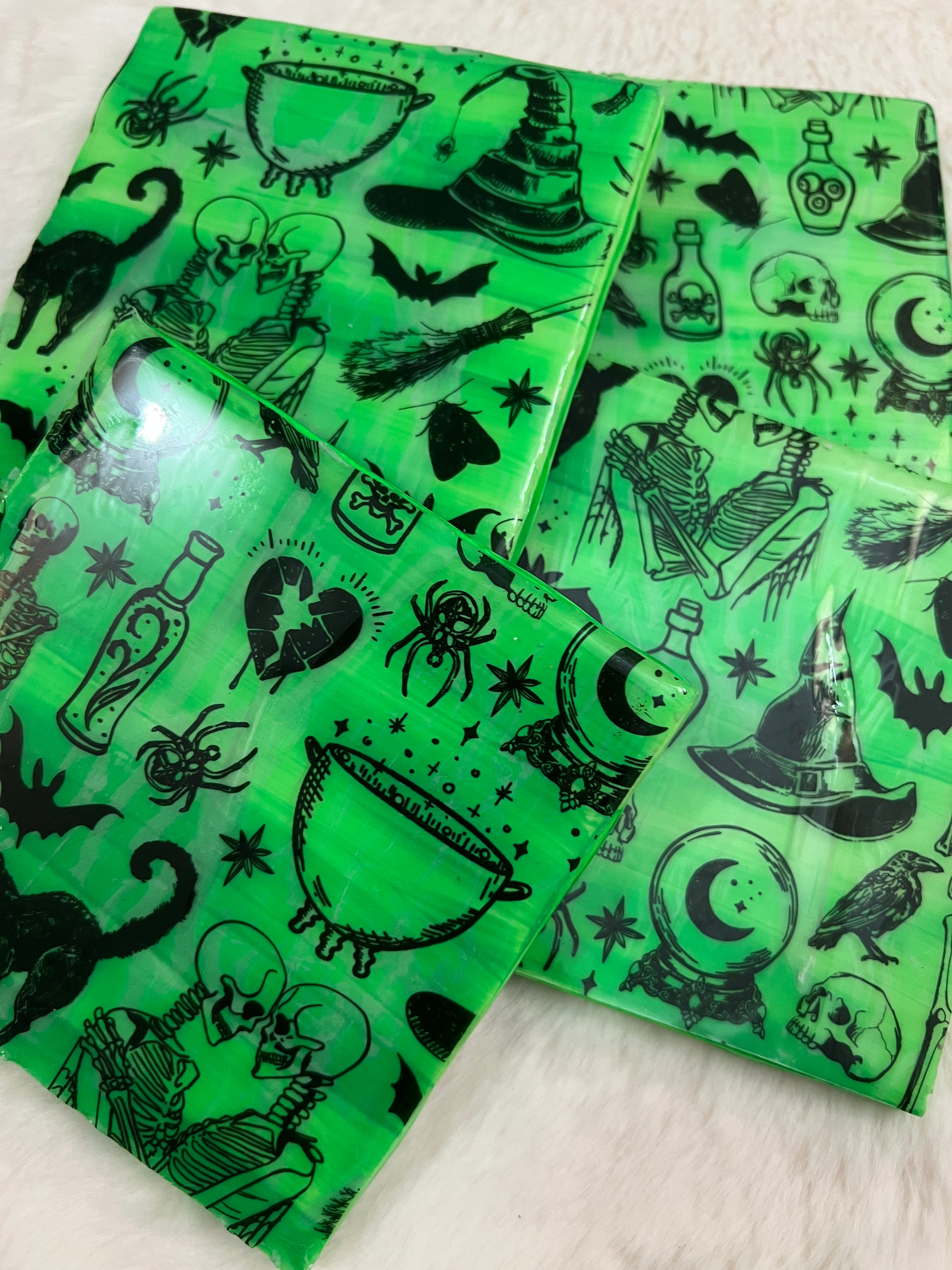 Embrace your inner enchantress with this spooky coaster set that brings witchy charm to any space. Featuring fun, mystical patterns perfect for potion-brewing enthusiasts and dark magic lovers, these coasters protect your surfaces while adding a dash of magical mischief to your décor. Whether you're sipping morning coffee or midnight tea, let these bewitching designs cast a spell on your guests. A playful nod to all things witchy and wonderful.